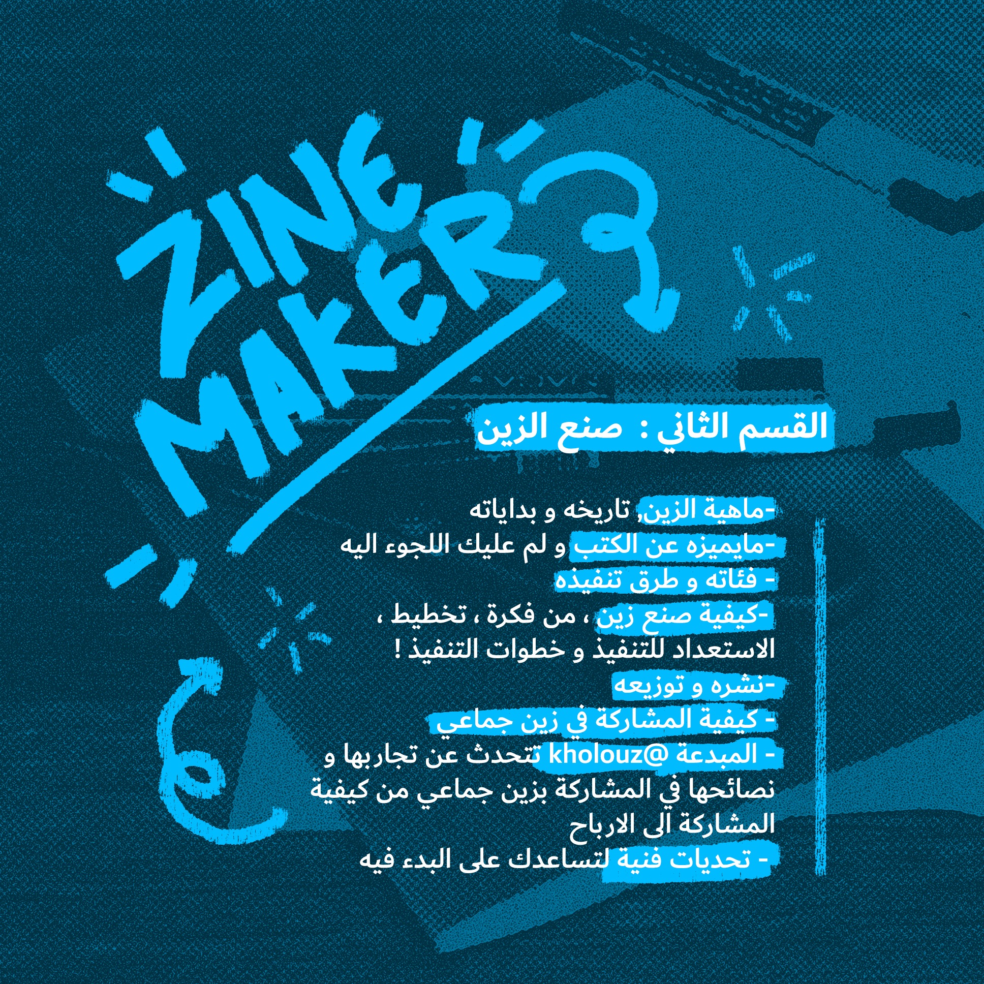 يمكن القول أنه نوع من المطبوعات ظهر كطريقة بديلة لصنع الكتب , بشكل بسيط و غير مكلف !! مفهوم الزين منتشر في الدول الأجنبية بشكل أكبر من الدول العربية. على الأرجح تسمع عنه لأول مرة , إلا أنه موجود قبل وجود الإنترنت !! و كان في ذلك الزمن البديل للمدونات و مواقع التواصل الإجتماعية. فكان الوسيلة الوحيدة ليعبر الناس عن آرائهم بحرية و يشاركونها مع الجميع . في هذا الكتاب قسم كامل موجه لتعريفك بهذا الفن الضائع و كيف يمكنك استغلاله لعرض أعمالك و نشر أفكارك .